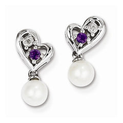 Sterling Silver Pearl Amethyst Diamond Pendant
