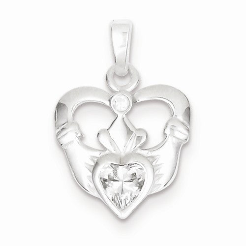 Sterling Silver Polished Claddagh with CZ Pendant, Pendants for Necklace