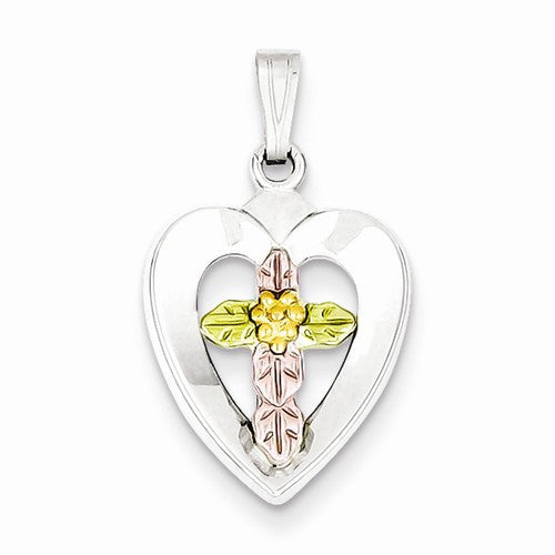 Sterling Silver Polished Heart with Color Accent Center Cross Pendant