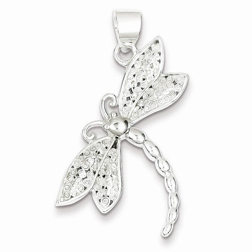 Sterling Silver Polished & Textured Dragonfly Pendant