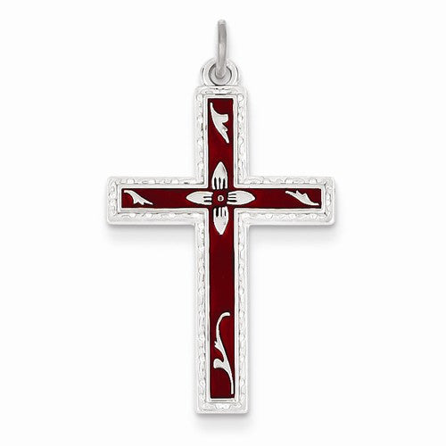 Sterling Silver Red Enameled Cross Pendant, Pendants for Necklace