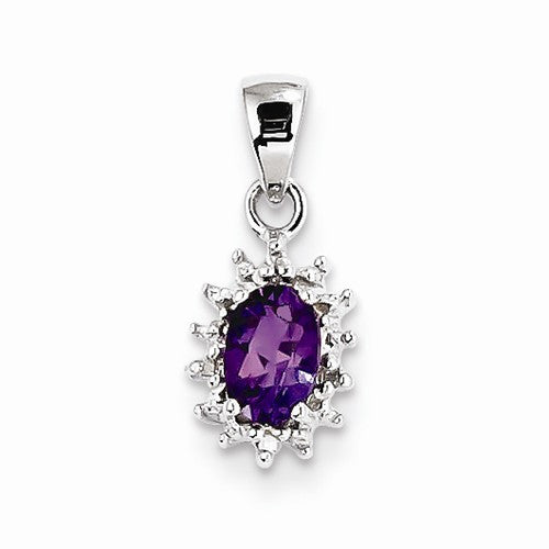 Sterling Silver Rhodium Amethyst & Diamond pendant