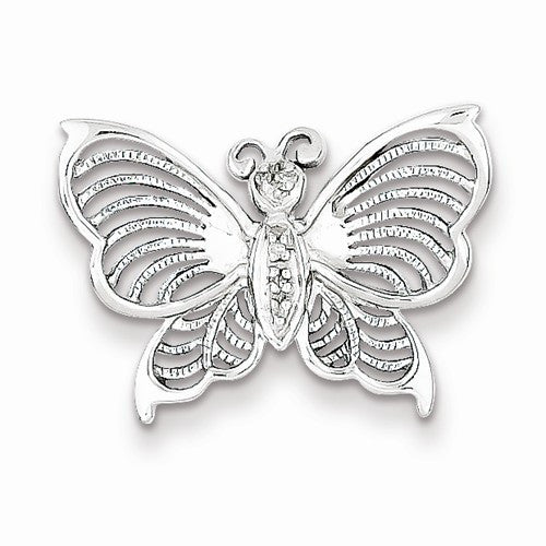Sterling Silver Rhodium Diamond Butterfly pendant