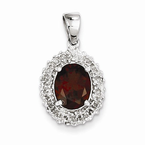 Sterling Silver Rhodium Garnet & Diamond pendant