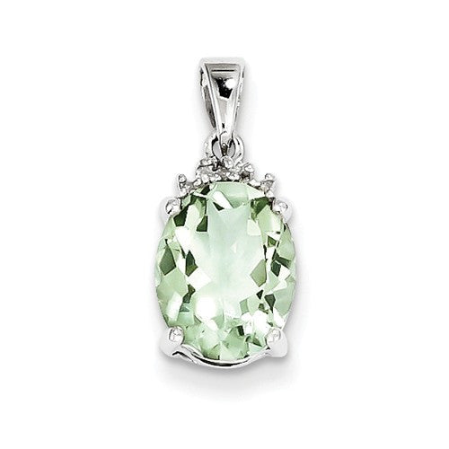 Sterling Silver Rhodium Green Quartz & Diamond pendant, Charm