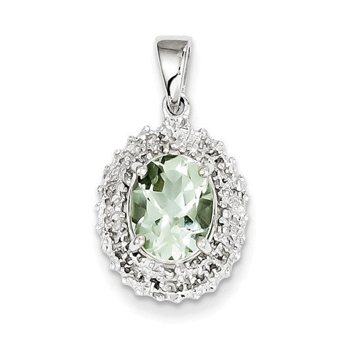 Sterling Silver Rhodium Green Quartz & Diamond Pendant, Lovely Pendants for Necklace