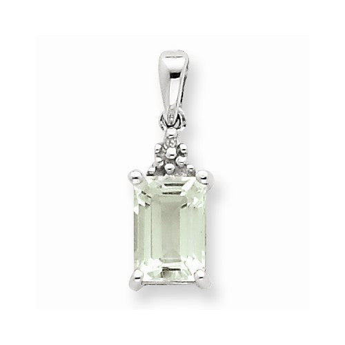 Sterling Silver Rhodium Green Quartz & Diamond pendant