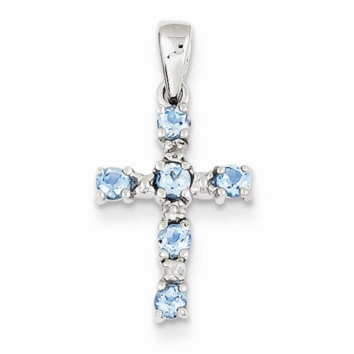 Sterling Silver Rhodium Lt Sw Blue Topaz Cross & Diamond pendant, Charm