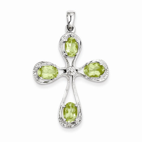 Sterling Silver Rhodium Peridot & Diamond Cross pendant