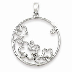 Sterling Silver Rhodium Plated Butterfly Circle Pendant