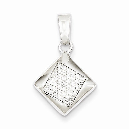 Sterling Silver Rhodium Plated CZ Diamond Shaped Pendant