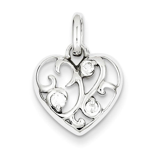Sterling Silver Rhodium Plated CZ Heart Pendant