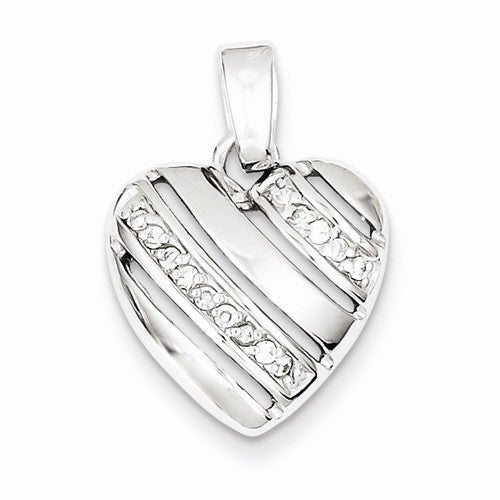 Sterling Silver Rhodium Plated CZ Heart pendant