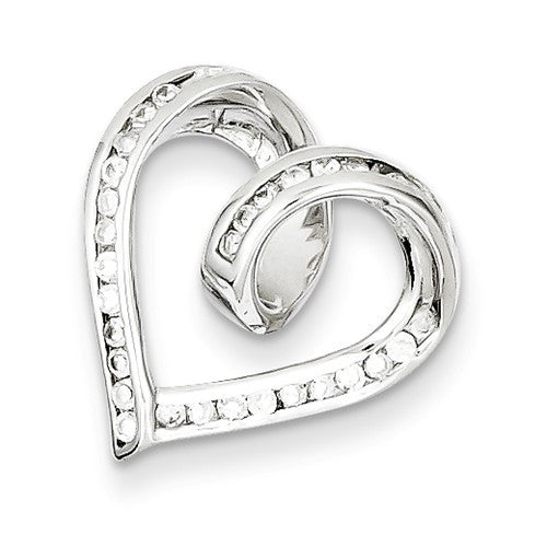 Sterling Silver Rhodium Plated CZ Heart Slide Pendant