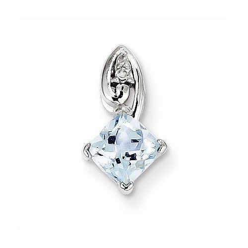 Sterling Silver Rhodium Plated Dia. & Aquamarine Square pendant