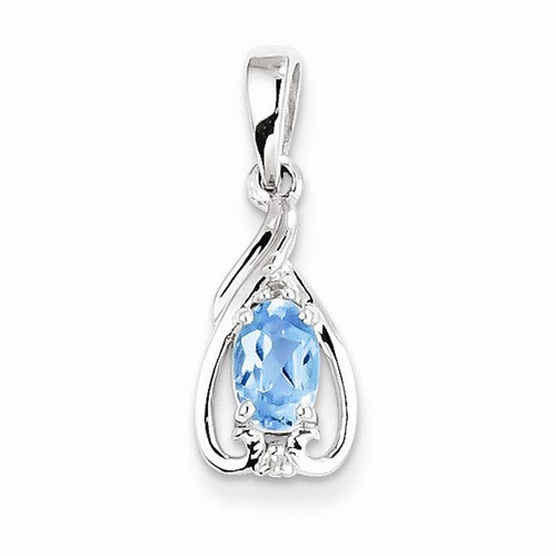 Sterling Silver Rhodium Plated Dia. & Sky Blue Topaz Oval pendant