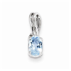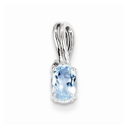 Sterling Silver Rhodium Plated Dia. & Sky Blue Topaz Oval pendant