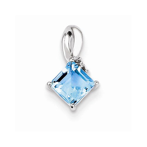 Sterling Silver Rhodium Plated Dia. & Sky Blue Topaz Square pendant
