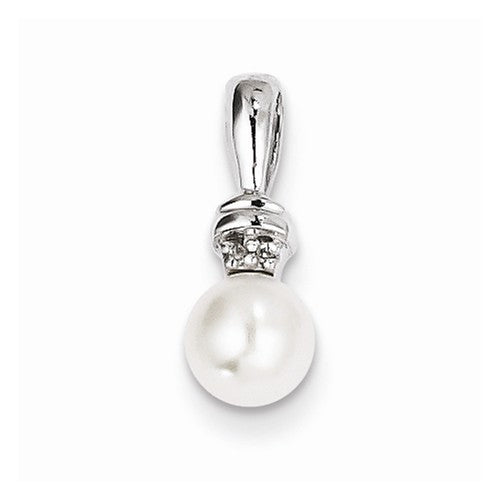Sterling Silver Rhodium Plated Diamond and FWC Pearl pendant, Delightful Pendants for Necklace
