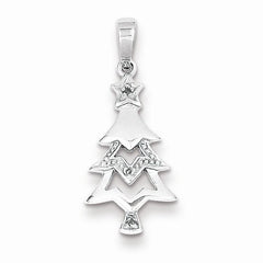Sterling Silver Rhodium Plated Diamond Christmas Tree pendant