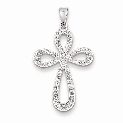 Sterling Silver Rhodium Plated Diamond Cross pendant