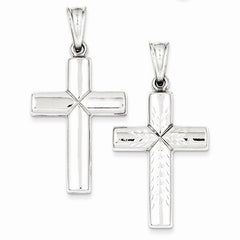 Sterling Silver Rhodium-Plated Diamond -Cut Cross Pendant