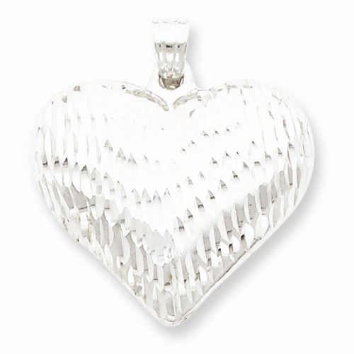 Sterling Silver Rhodium-Plated Diamond-cut Puffed Heart pendant