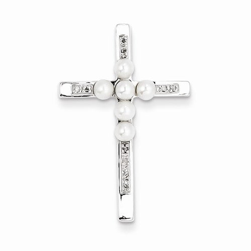 Sterling Silver Rhodium Plated Diamond FWC Pearl Cross pendant
