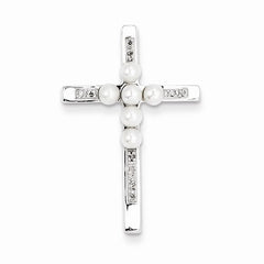 Sterling Silver Rhodium Plated Diamond FWC Pearl Cross pendant, Appealing Pendants for Necklace