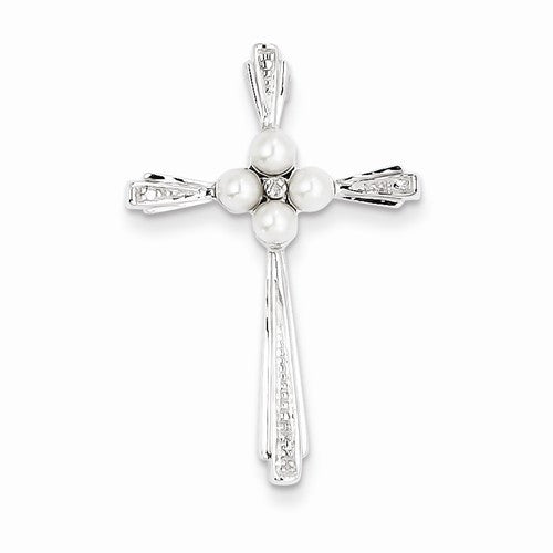 Sterling Silver Rhodium Plated Diamond FWC Pearl Cross pendant