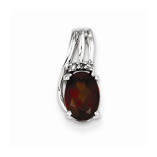 Sterling Silver Rhodium Plated Diamond & Garnet Oval pendant