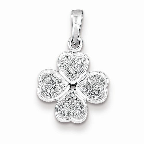 Sterling Silver Rhodium Plated Diamond Heart Clover Pendant