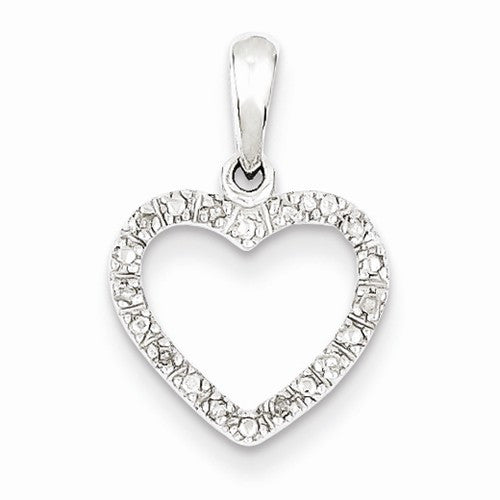 Sterling Silver Rhodium Plated Diamond Heart Pendant