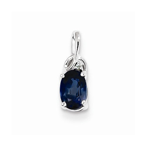 Sterling Silver Rhodium Plated Diamond Sapphire Oval Pendant