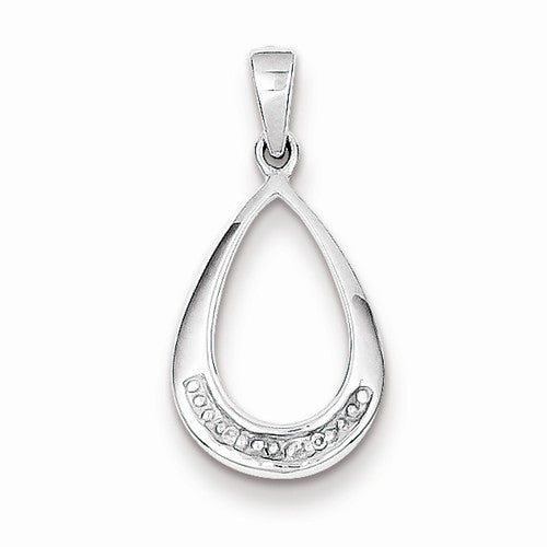 Sterling Silver Rhodium Plated Diamond Teardrop pendant