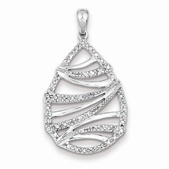 Sterling Silver Rhodium Plated Diamond Teardrop pendant