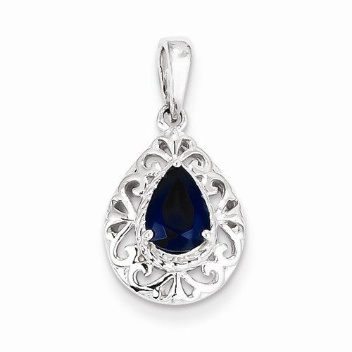 Sterling Silver Rhodium Plated Sapphire Teardrop Pendant