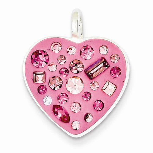 Sterling Silver Rhodium Plated Stellux Crystal Pink Heart Pendant