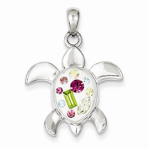 Sterling Silver Rhodium Plated Stellux Crystal Turtle pendant