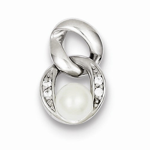 Sterling Silver Rhodium Plated White Synthetic Pearl Pendant