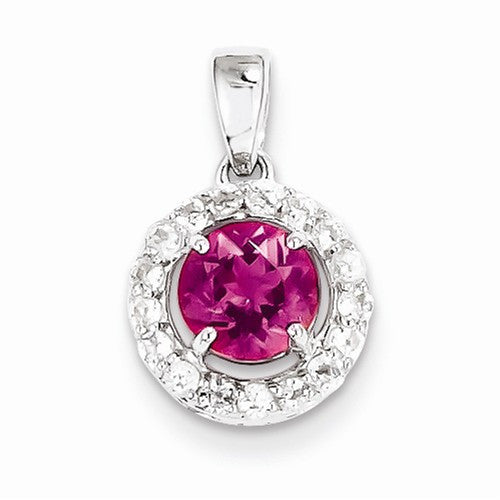 Sterling Silver Rhodium Plated White Topaz & Pink Tourm. pendant