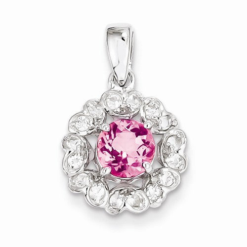 Sterling Silver Rhodium Plated White Topaz Pink Tourmaline pendant