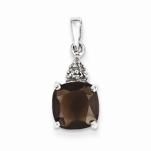 Sterling Silver Rhodium Smokey Quartz & Diamond pendant