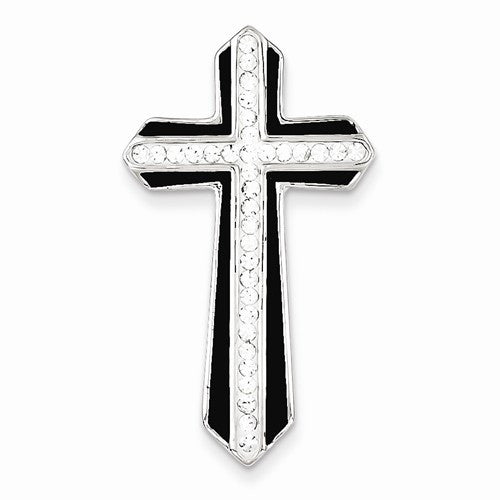 Sterling Silver Rhodium Stellux Crystal & Enamel Cross Slide Pendant