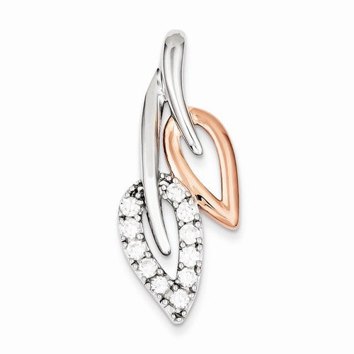 Sterling Silver & Rose Vermeil CZ Leaf Slide Pendant