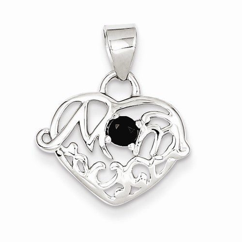 Sterling Silver Sapphire Mom Heart Pendant