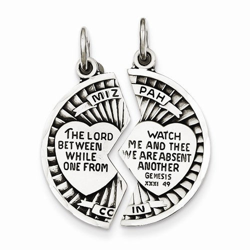 Sterling Silver Satin Antiqued 2-Piece Mizpah Pendant, Pendants for Necklace