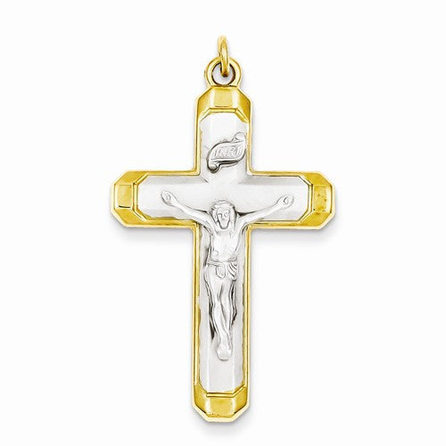 Sterling Silver Satin & Polished Vermeil Corpus Cross Pendant