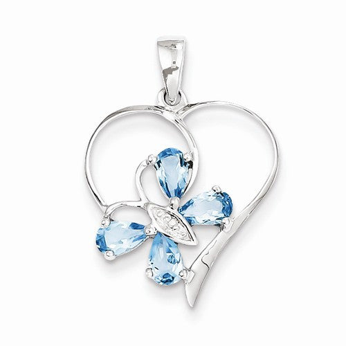 Sterling Silver SW Blue Topaz & Diamond Butterfly Heart Pendant