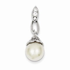 Sterling Silver Syn. Pearl CZ Pendant
